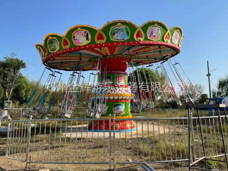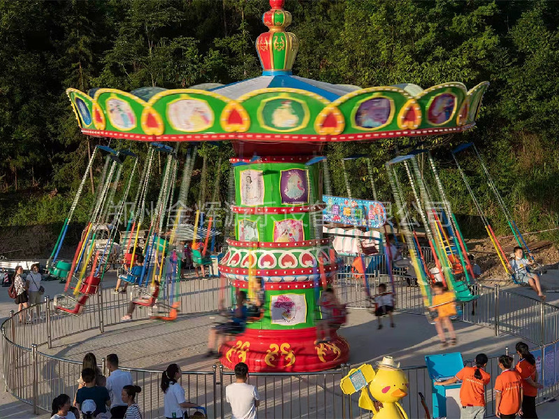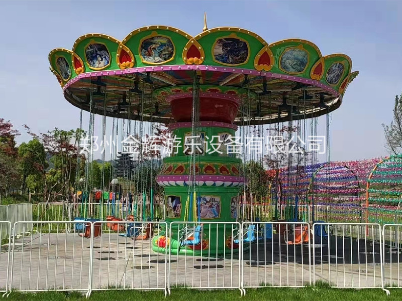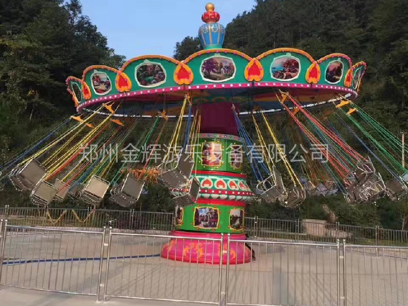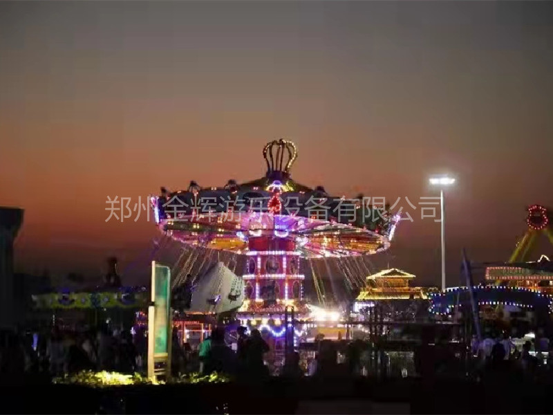 旋轉(zhuǎn)飛椅是項十分受大眾喜歡的游樂設(shè)施颶風飛椅像是把大傘(或能搖頭的大傘)下吊著很多把靚麗 的吊椅,在大傘轉(zhuǎn)動(或搖頭)時,吊椅在空中波浪起伏地旋轉(zhuǎn)飛舞。設(shè)備轉(zhuǎn)動時,乘坐在吊椅上的乘客猶如在藍天飛舞,體驗刺激收獲快樂。颶風飛椅是集旋轉(zhuǎn)、升降、變傾角等多種運動形式于體的大型飛行塔類游藝機。當傘形轉(zhuǎn)盤和中間轉(zhuǎn)臺反向旋轉(zhuǎn)啟動時,塔身徐徐上升,此時轉(zhuǎn)盤搖擺,飛椅呈波浪蕩漾狀,游客猶如在空中飛翔、飄蕩,海闊天空、驚心動魄。設(shè)備巍峨雄偉,它柔和了絢麗的燈飾和七彩繽紛的圖案設(shè)計,造型華麗,是目前游樂場上 漂亮 吸引人的游藝機之,也是標準的主題公園或現(xiàn)代游樂場的項目之。