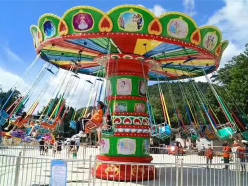 豪華旋轉(zhuǎn)飛椅是種新穎飛行塔類游樂設(shè)備。立柱作公轉(zhuǎn)運(yùn)動(dòng),部大轉(zhuǎn)盤上升、傾斜、搖擺式反方向自轉(zhuǎn)運(yùn)動(dòng),使得環(huán)鏈懸掛的乘客,在離心力的作用下起伏飛旋,三種疊加運(yùn)動(dòng)的結(jié)合,猶如蕾綻放,又如銀燕在睛空中飛舞。夜幕降臨,搖擺旋轉(zhuǎn)傘與城市霓虹交輝相應(yīng),疑是道城市彩虹。游客乘坐在垂掛的吊椅上,隨轉(zhuǎn)盤的轉(zhuǎn)動(dòng)而徐徐升起,仿佛在空中飛舞翱翔,由于轉(zhuǎn)盤的升,垂直柱頭角度漸漸偏轉(zhuǎn),使游客猶如置身于波濤起伏的大海中其樂無窮,再加上豪華靚麗的外觀裝飾,令人耳目新,在運(yùn)動(dòng)中使圍觀之人眼花繚亂,直想試為快,真是游樂園的亮點(diǎn)。